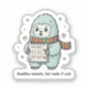 A cozy, relatable sticker for deadline warriors who survive with caffeine, courage, and cuteness 💻❄️