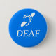Deaf Symbol over the word DEAF. 6 Cm Round Badge