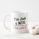 Text design saying "I'm Just a Mug - DEAL WITH IT!". A red horizontal line divides the two parts, and they are also set in different fonts and colours to soften up.
