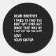 Dear Brother I Tried To Find The Present Funny Sis Classic Round Sticker