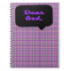 This purple plaid spiral-bound notebook features a bold black speech bubble with the words “Dear God” in a stylised font—an invitation to begin the conversation, no matter where you are in your journey. Whether you're writing prayers, venting frustrations, or documenting spiritual growth, this journal holds space for your whole heart.