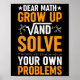 Dear Math Grow Up And Solve Your Own Problems Funn Poster