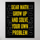 Dear Math Solve Your Own Problem Funny Math Quote Poster