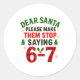 Dear Santa 67 Funny Christmas Six Seven 6-7 Men Wo Classic Round Sticker