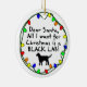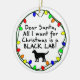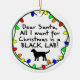 Dear Santa, All I want for Christmas is a Black Lab! Fun holiday dog lover design is ringed in a strand of colourful Xmas lights, and a small drawing of the dog breed by a child. Extremely cute, perfect to include your favourite Labrador Retriever in the holiday season.