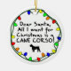 Dear Santa, All I want for Christmas is a Cane Corso! A colourful string of Xmas lights surrounds a child's note to Santa and a cute Cane Corso Italiano drawing. A fun way to include your favourite dog breed in the holiday season!
