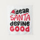 Get into the holiday spirit with my popular design: 'Dear Santa Define Good'. This playful little number features a trendy font and eye-catching red and black colour scheme. Perfect for holiday fashion or sprucing up your home decor with this cute tapestry. Shop now and add a touch of festive humour to your winter wardrobe or home.