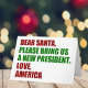 Dear Santa, please bring us a new president. Love, America. Funny political Christmas cards for an anti Trump democrat. Holiday humour greeting card.
