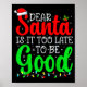 Dear Santa Is It Too Late To Be Good Funny Christm Poster