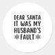 Dear Santa It Was My Husband's Fault Funny Christm Classic Round Sticker