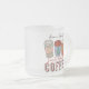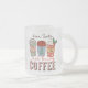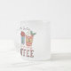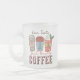 This cute frosted glass coffee mug is a fun holiday mug for all coffee lovers during the Christmas holiday season! Text says "dear Santa just bring Coffee" and there are images of fun seasonal coffee cups.
