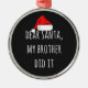 Dear Santa My Brother did it Funny Christmas Metal Tree Decoration