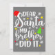 Dear Santa My Brother Did It Funny Xmas Christmas Invitation