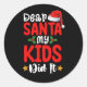 Dear Santa My Kids Did It Christmas Dad Mum Classic Round Sticker