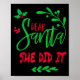 Dear Santa She Did I Funny Christmas Men Women Kid Poster
