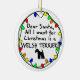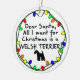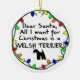 Dear Santa, All I want for Christmas is a Welsh Terrier! Super cute dog lover ornaments, stamps, stickers and more, perfect for including your favourite pet in the holiday season. A colourful string of Xmas lights circles the outside, while a child's note to Santa and his drawing of the dog breed are in the centre. Very cute Welsh Terrier design!