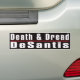 Large white text on black. Easy to read at a distance. Refers to his mishandling Covid and other issues in Florida. "Death and Dread Desantis." From Balance America.