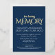 Remember the passing of your loved one with this tribute memorial death anniversary invitation. A peaceful simple flying metallic gold or silver foil dove graphic on the colour background of your choice, currently dark blue. Personalise with your own venue, and name of your loved one and rsvp details and your favourite photo on the reverse. Other matching items are available. Designed by www.mylittleeden.com