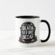 This darkly humourous mug is perfect for coffee lovers who can't function without their caffeine fix! Featuring a tombstone with the phrase "Death Before Decaf" and a scattering of coffee beans, this design is a fun way to express your love for coffee. Personalise it by adding a name to the tombstone, making it a unique gift for yourself or a fellow coffee addict. This high-quality mug is microwave and dishwasher safe for everyday use.