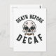 Show your love of coffee in style! This design features a unique skull with the phrase "Death Before Decaf," perfect for those who prefer their coffee to be caffeinated.