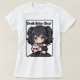 Dramatic kawaii chibi girl in goth-loli dress holding skull mug