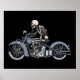 Skeleton rider on a custom vintage bike passing and waving a low peace sign. Coloured ink drawing printed on t-shirts, hoodies, posters, gifts.