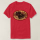 I give wanted to give this a 4 instead of a 5 because these Basic DARK T0shirts run unexpectedly SLIM or Narrow. Which is great if you do not have a potbelly, but I have a paunch. It isn't the shirt's fault that I've got a beer belly. The design and shirt itself is a quality cotton shirt. The color is more of a deep purple, but still a very pretty color. The Basic DARK T-shirts run a bit SLIMMER than the Basic Ts. The neck is a fraction narrower (or seems to be narrower) also. I'm a paunchy middle-aged woman and my neck is 12 inches (31cm) thick and the neckline fell about the same as in the photo of the man, and I had the desire to tug it a bit. So if you're a thick necked man or like loose shirts, be aware these are slimmer shirts. Once I get rid of my lockdown paunch it'll look great. The shirt washed well in cold water with no apparent bleeding. We don't have a dryer, so it hung dry. Did not shrink. Love the colors and the design. The design looks smaller on my shirt than it does on the model on-line. But still, it looks good on the shirt. The printing looks as it does on the model, just the size seems fractionally smaller. Washed garment in cold water, hung dry and design appeared unaffected.