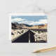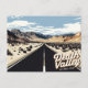 Striking vintage-style travel poster art showing an endless, straight highway running through the vast, arid desert of Death Valley National Park, framed by distant mountains. Captures the extreme, rugged beauty of the California/Nevada landscape. Excellent for road trip enthusiasts, desert lovers, and collectors of retro national park posters.