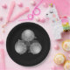 A biohazard symbol done in grey tone. The inner circle was replaced with a black and white strand. Three black skulls were placed at the intersection of the symbol.
