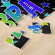 This lively, vibrant, birthday-themed jigsaw puzzle design has the message "HAPPY BIRTHDAY, DEBRA" with the characters having a colourful rainbow spectrum inspired gradient pattern, in addition to an exciting star shapes background pattern. A vibrant puzzle like this might be a fun way to acknowledge the birthday of somebody named Debra. [~Z0000468]