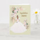 Debutante congratulations card with an illustration of a young lady in a white gown, with beautiful roses surrounding her. The front is permanent, but the inside words can be changed. Thanks to the Hungryjpeg for some of the elements in the design.
