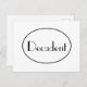 Typography design which reads 'Decadent' in an art deco style typeface. Lettering is black on a stark white background and is surrounded by a black edged oval. Easily personalise this card by editing the template text. Check out my other Art Deco designs. Thanks for viewing my designs!