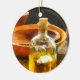 Designs by Susan Savad -- This square glass decanter of oil sitting in front of wooden salad bowls is beautiful as well as practical. It would dress up any dinner table.