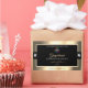 The design features a noble shimmering light golden frame with fine decor lines, on a plain black background.