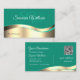 Decent Dark Teal Wavy Gold Decor Initials QR Code Business Card