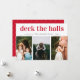Deck The Halls Red Script Three Photo Holiday Card