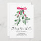 Are you moving to a new home this festive season? This festive moving announcement card lets family and friends know your new address. It is decorated with watercolor mistletoe, red ribbon, and "Decking New Halls" in stylish typography.