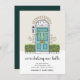 Charming holiday themed moving announcements let friends and family know that you're decking new halls this year! Cute design features a sketched aqua door illustration adorned with a Christmas wreath and flanked with green bushes, with "we're decking new halls" beneath in modern script lettering. Personalise with your new address and family name or names.