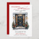 This watercolor new home "Decking New Halls" holiday announcement card with "Merry Christmas 20XX", your new address, your family name and your first names in modern yet traditional fonts in black and red with a coordinating red back would be perfect to send to your friends and family this Christmas. The black front door could be anywhere and the festive lights, red bows, Christmas trees, and wreath add that extra touch of holiday spirit. To customise and make these your own select "Personalise this template" and type in your information. It's so easy!