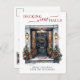 This watercolor new home for the holidays announcement postcard with "Decking New Halls - Merry Christmas From ___" on the front and "Wishing you peace and joy this holiday season!", your new address and phone number, your family name and your first names on the back in modern yet traditional fonts would be perfect to send to your friends and family since you have moved to a new home this year. The black front door could be anywhere and the festive trees and wreath add that extra touch of Christmas spirit. To customise and make these your own select "Personalise this template" and type in your information. It's so easy!