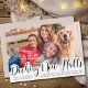 Modern Decking New Halls, hand lettered, single photo holiday card. The photo template is set up for you to add a horizontal photo and you can also add your new address and personalised greeting. Minimal typography design with cool black and white hand lettering which sits as a text overlay at the bottom of your picture. Please browse my store for alternative festive wording and colours on the back (or click "customise further" to change the background colour yourself).