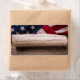 US Declaration of Independence rolled in a scroll bordered by a vintage American flag