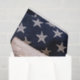 US Declaration of Independence rolled in a scroll bordered by a vintage American flag