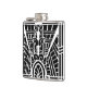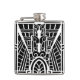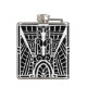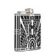 Flask in a geometric pattern based on Art Deco architectural details - white on a black background