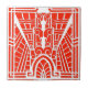 Ceramic tile in a geometric pattern based on Art Deco architectural details - white on a deep mandarin orange background