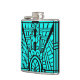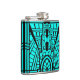 Deco Architectural Pattern, Turquoise and Black Hip Flask