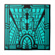 Ceramic tile in a geometric pattern based on Art Deco architectural details - black on a turquoise / peacock background