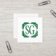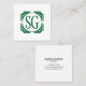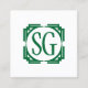 A square business card template with initials placed inside a decorative box. In this version the initials are in the Integrity bold font. Name and profession/job title along with telephone, email and website address in black on the reverse side on a white background, using variations of the Matt Antique font.