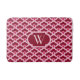 Chinese scallop, or wave pattern, traditional in textile and enamel work, bath mat with monogram in deep burgundy wine and shades of soft pink with deep rose pink accents