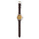 Chinese scallop, or wave pattern Leather Strap Watch, traditional in textile and enamel work, in rich mustard gold, chocolate brown, and cream, accented with cocoa brown